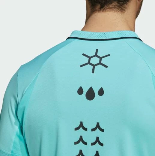 A COOLING POLO MADE IN PART WITH PARLEY OCEAN PLASTIC.