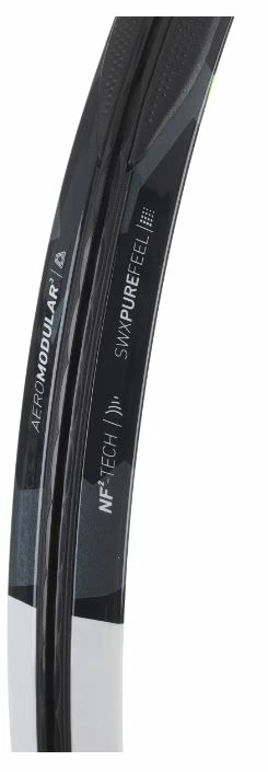 An aerodynamic frame integrating the bumper and grommets increases your racquet head speed and spin generation.
