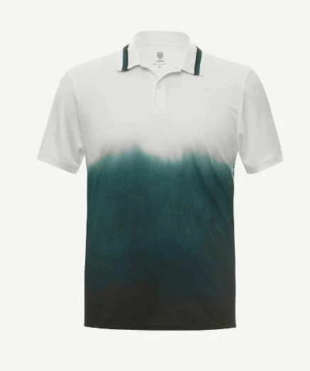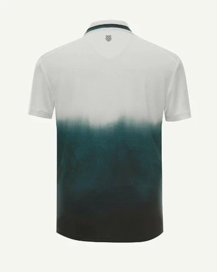Redefining the classic tennis polo for the player refining their game. Designed to float on the body, never clinging or holding your game back. It also maximizes breathability and movement by featuring gussets under the arms. Bold ombre color blocking of White to Evergreen to Black accentuates the frame and shoulders. A heritage, rugby stripe on the collar pays homage to classic tennis.