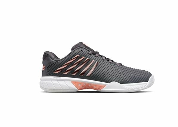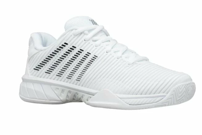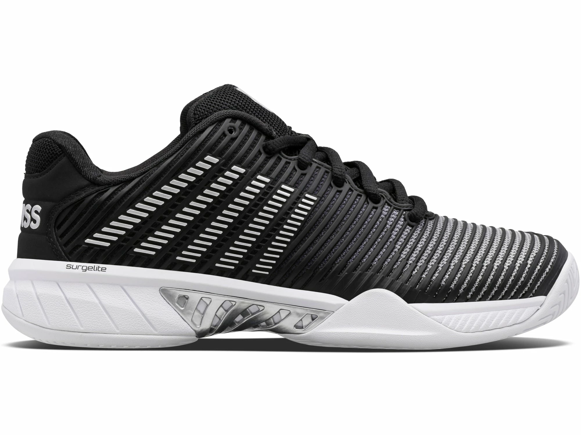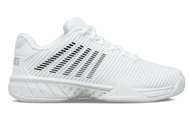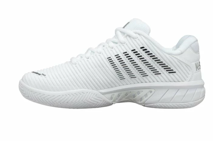 K-Swiss best-selling shoe, the Hypercourt Express 2, is light, comfortable, breathable, and has a generous fit, making it the ideal choice for a variety of playing styles and levels. Durawrap Flex, gives the shoe support with no break-in period, while Surgelite midsole technology provides all day comfort.
