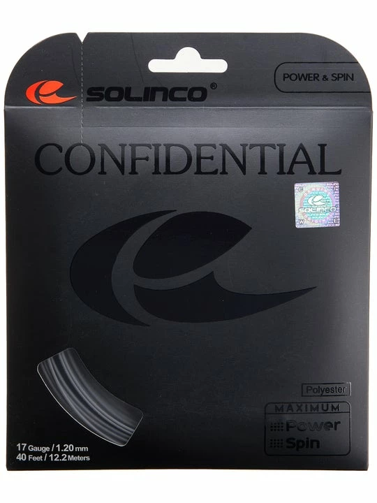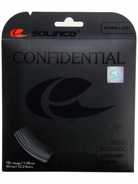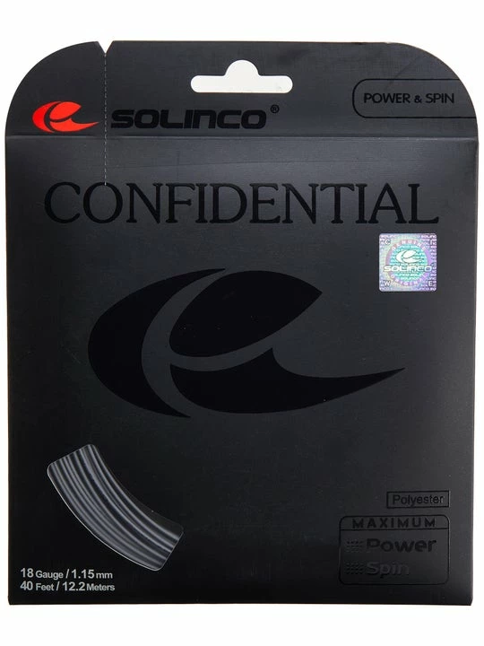 It’s finally here! Solinco Confidential Tennis String is a newly developed, versatile co-polyester string. Confidential offers improved playability, control, and vastly improved tension maintenance over the current polyester market. With its ultra-precise response and 4-sided profile, this string has exceptional control and impressive spin-potential as well as optimal snap back and a surprising amount of power for a co-polyester string.