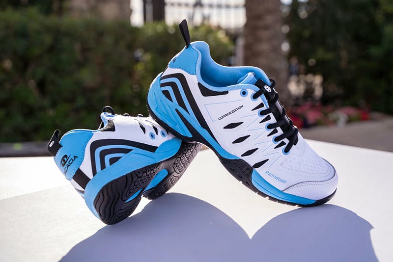 Designed by Corrine Carr and Acacia with the needs of Champion athletes in mind, the Acacia Corrine Carr Signature Edition is Acacia’s first ever pickleball shoe available in standard women’s sizing. The first ever Signature-shoe created for the sport of pickleball and is Acacia’s lightest and most agile pickleball shoe to date. The Upper is constructed of ProFlex material, an elasto-polymer fiber membrane that frames the shoe with a flexible, comfortable support structure. Thermally bonded and stitched wrap-around drag guard made from high grade leather. Micro-honeycomb (MicroHC) mesh material provides breathability for improved air flow and ventilation above toes. Heel Control Stability (HCS) provides an exceptionally strong heel counter to ground movements and to support ankles and heels during rapid lateral movements. Durable ballistic nylon inner lining.