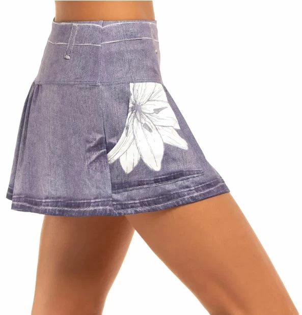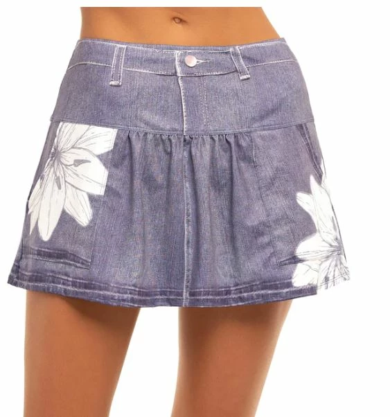 Bringing streetwear to the courts in the Floral Denim Pocket Skirt. The floral print on the skirt gives it a fun feminine touch, but it is definitely for the cool girl of the match. This skirt will easily be mistaken for a real denim skirt so it can be worn from the streets to the courts.