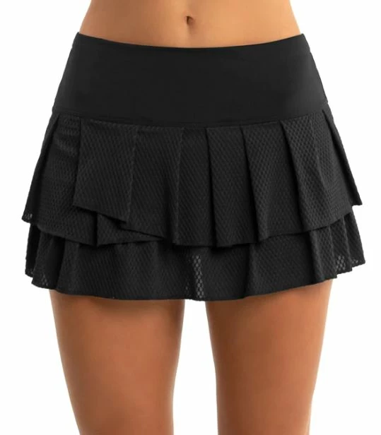 Lucky’s signature pleat tier Skirt in Black gets an update in new a waffle textured fabric. Length 12″