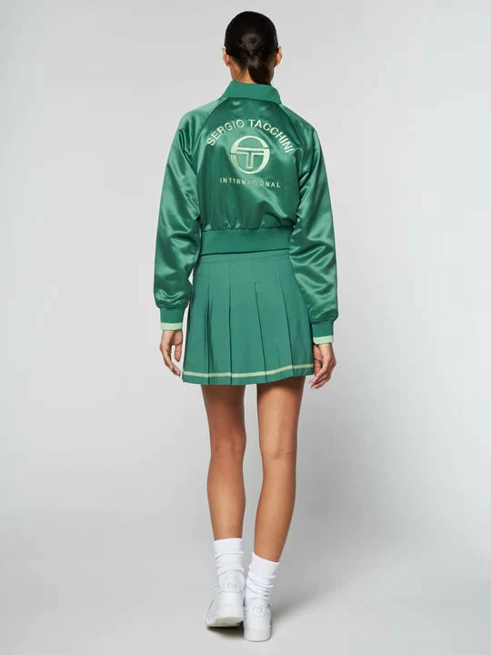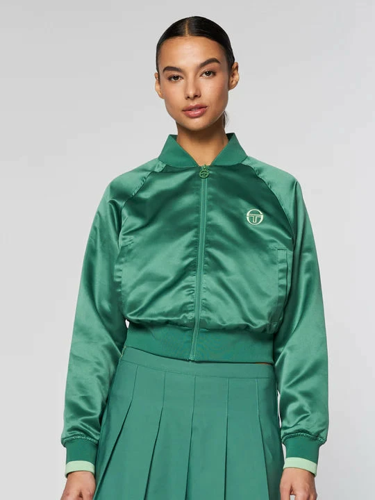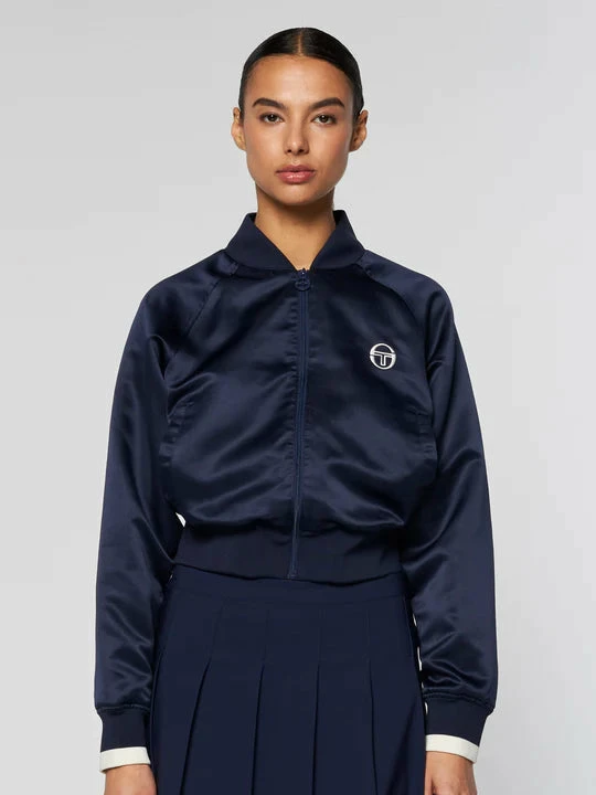 This jacket is inspired by a vintage design with a satin smooth finish and a crop cut with a full front zip.