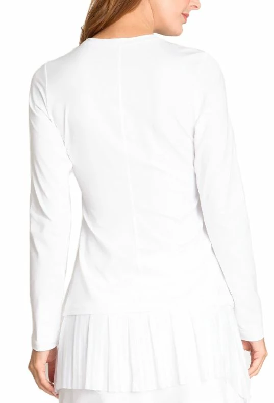 This top performance long sleeve protects your skin with UPF 50+ when the rays are strong. This piece I with unique inserts of stripe mesh and the softest performance fabric, Sofi- Premier.