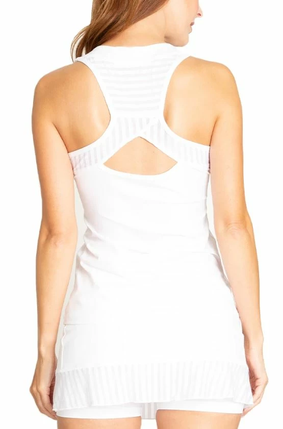 Elegance at its finest!  This all-white racerback tank features a keyhole opening in the back and symmetrical panels dressed in a mesh. Crafted with Sofibella’s softest and most breathable fabric, Sofi-Premier. Pair this tennis top with any Olympic Club collection skort!